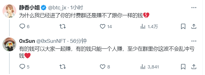 @0xSun回复:有的钱可以大家一起赚,有的钱智能一个人赚,至少在群里你这波不会乱冲亏钱