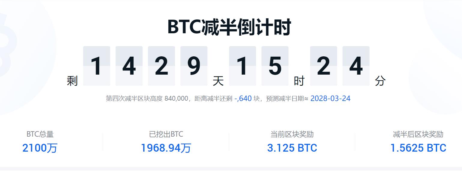 目前比特币经过4次减半,现在每个块奖励是3.125个比特币+手续费。