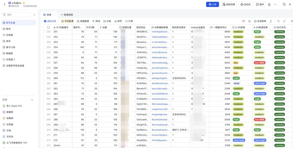 终于结束了,三个月来真是被各种折腾的没脾气,273台macmini M2,平均每台151个币(维护的不好,后面细说,正常跑满应该200+),算上机器磨损+场地+宽带等,折合获取代币成本0.7U;刷了3600万的packback交易额,获取IO代币的综合成本是2.1U