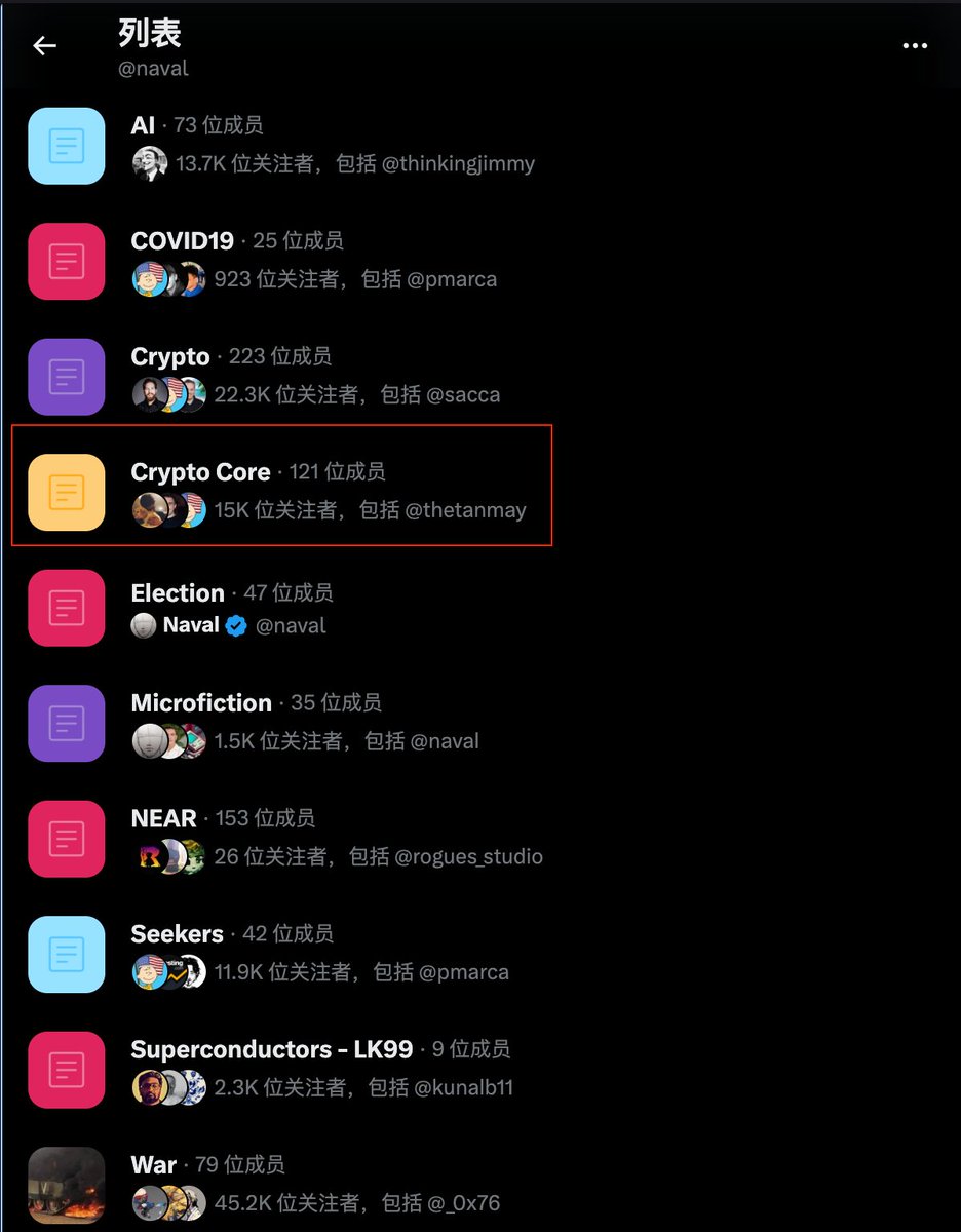 这里面都是 @Naval 自己创建并添加的相关用户。