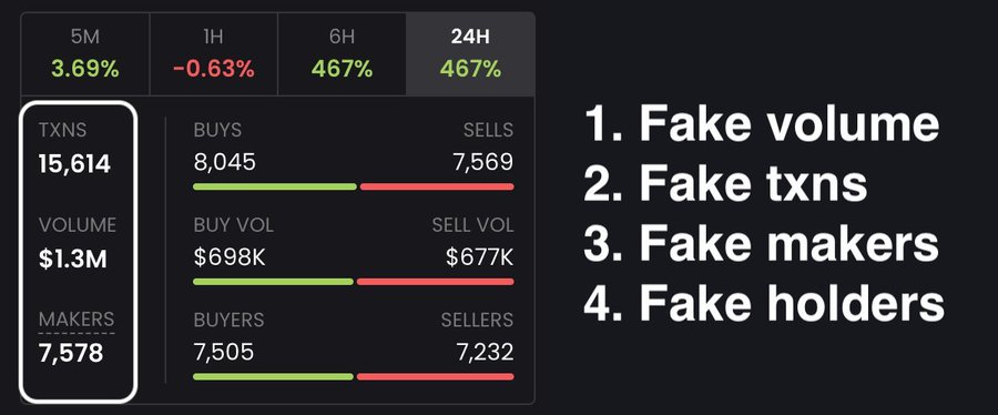 接下来看看他们如何“操弄” $SOL 上的指标,同样的,他们也可以在$ETH 、 $BASE 链上或任何其他链上使用完全相同的手法和伎俩,仅供学习和了解。