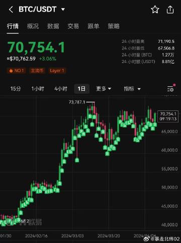 行情还是波澜不惊,处于整理阶段,比特币报价70754美元。