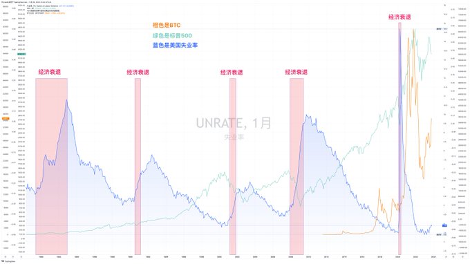 到这里很多小伙伴可能看不下去了,不是说 #BTC 价格吗?扯什么美国经济衰退,即便是经济衰退了和币市有什么关系,现在BTC和ETH早就不跟美股了,也不跟黄金,现在是独立大牛行情,美股就是跌成渣也和币市没有关系。嗯,如果真的是这么认为的话,我只能说你错了,确实币市目前的情况很好,不但是BTC和ETH涨幅不错,就是很多的ALT都有大幅上涨,甚至出现了几十倍几百倍的上升,但这些上涨的前提条件都是建立在市场有钱,情绪膨胀的情况下,如果美国再次进入经济衰退,股市大跌,那么进入币市的资金必然会受到影响。