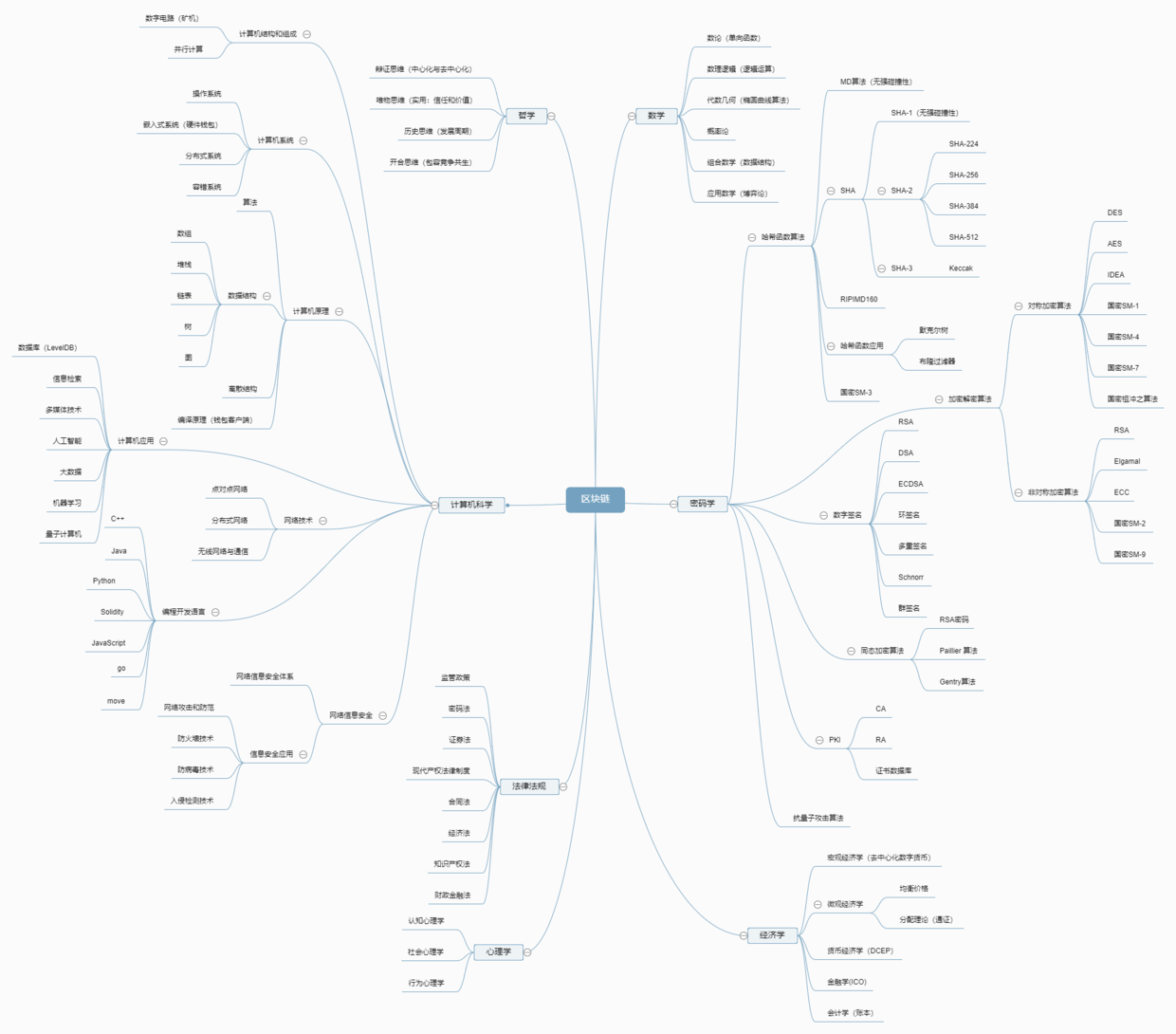 本聪老师:其实严格来讲,我们知道,区块链技术诞生之初也就是比特币诞生的时候,更多是借鉴包容了多个学科的知识以及多个数字货币失败的案例,因此可以说区块链技术不是一种全新的技术,它更多是人类已有知识的组合。从这点看,似乎不是创新。但是我们从学习的目的来看,人类历史大部分创新都是站在巨人的肩膀上,学习已有的知识,融会贯通之后迁移到新的领域而实现的创新。区块链技术这种极强的包容性,甚至成为其未来持续创新的优势。下面我们先来看下区块链技术都包括哪些学科的知识。