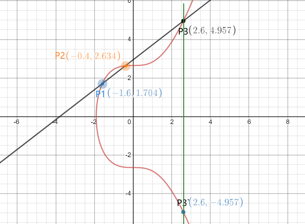 图2-5,椭圆曲线的加法。源自:https://www.desmos.com/calculator/0mnue7w8lk