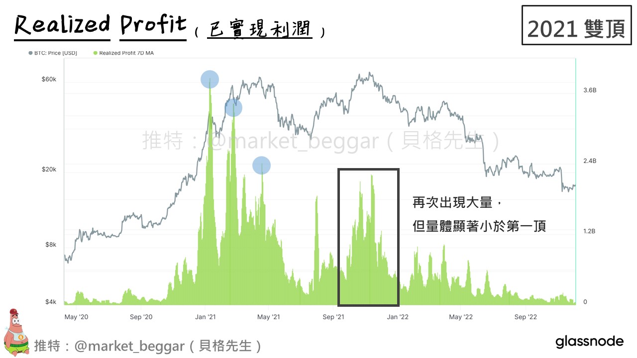 而在2021 年第二顶,再次出现了巨量的Realized Profit,