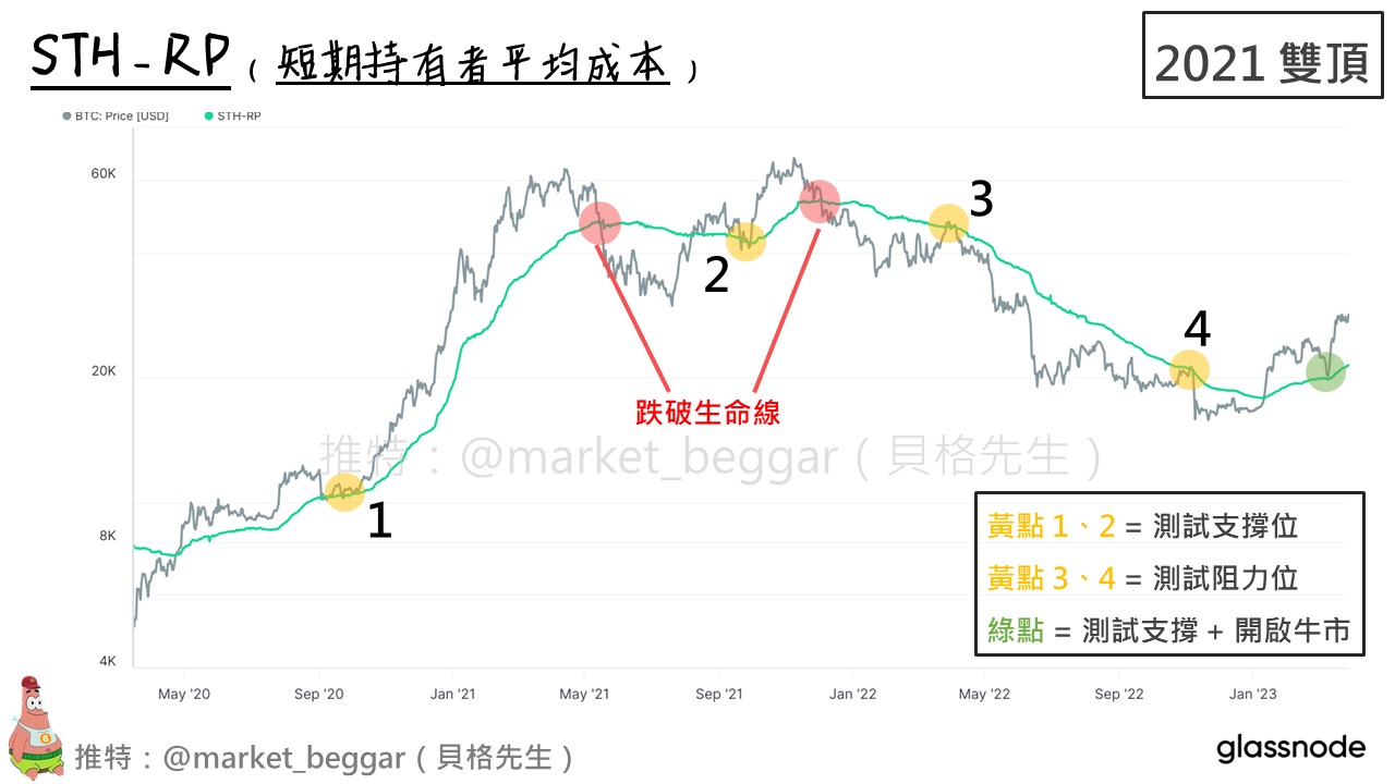 一旦价格跌破STH-RP(短期持有者的平均成本),
