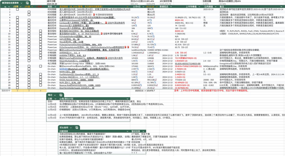 2025 BTC 逃顶指标清单