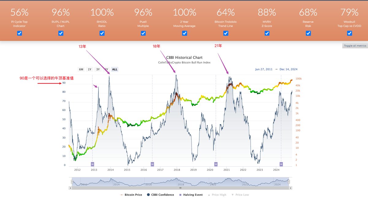 a.前三轮周期CBBI都达到95以上,其他时间无噪音。