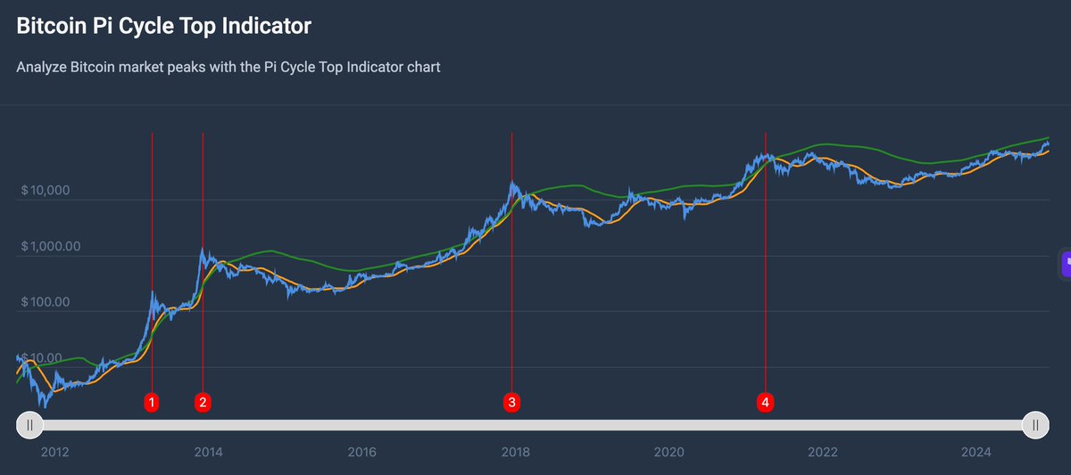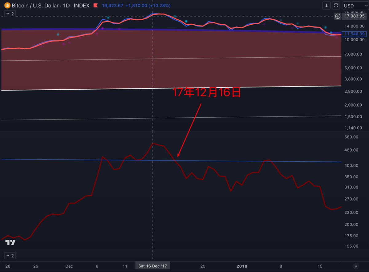 如果上一轮 相信PI Cycle Top 也能顺利逃顶,那么即使没等到 两线死叉,先碰到一条线的价格(12月14日为128386)可能会卖飞,