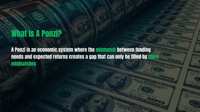 简而言之,庞氏是一种经济体系,其中资金需求与预期收益之间的错配产生了一个“缺口”,而这个“缺口”只能通过进一步的错配来填补。(此定义为本人原创,特此说明。)