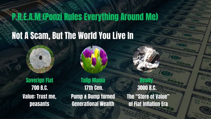事实上,庞氏在日常生活中比你想象的更为常见,而且它们往往看似合理。以住宅房地产市场为例,这一市场自公元前3000年起就存在,并被视为一种“有生产力的”价值储存方式。然而事实上,如果不是因为现代法币印钱导致快速且持续增长的通货膨胀,这种价值逻辑根本无法维系