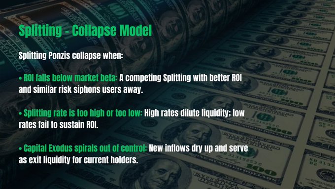 在我看来,拆分盘是最复杂且最难掌控的庞氏系统。它通常不会单独存在,而是作为一种“去泡沫”机制嵌套在其他一种或两种庞氏形式中