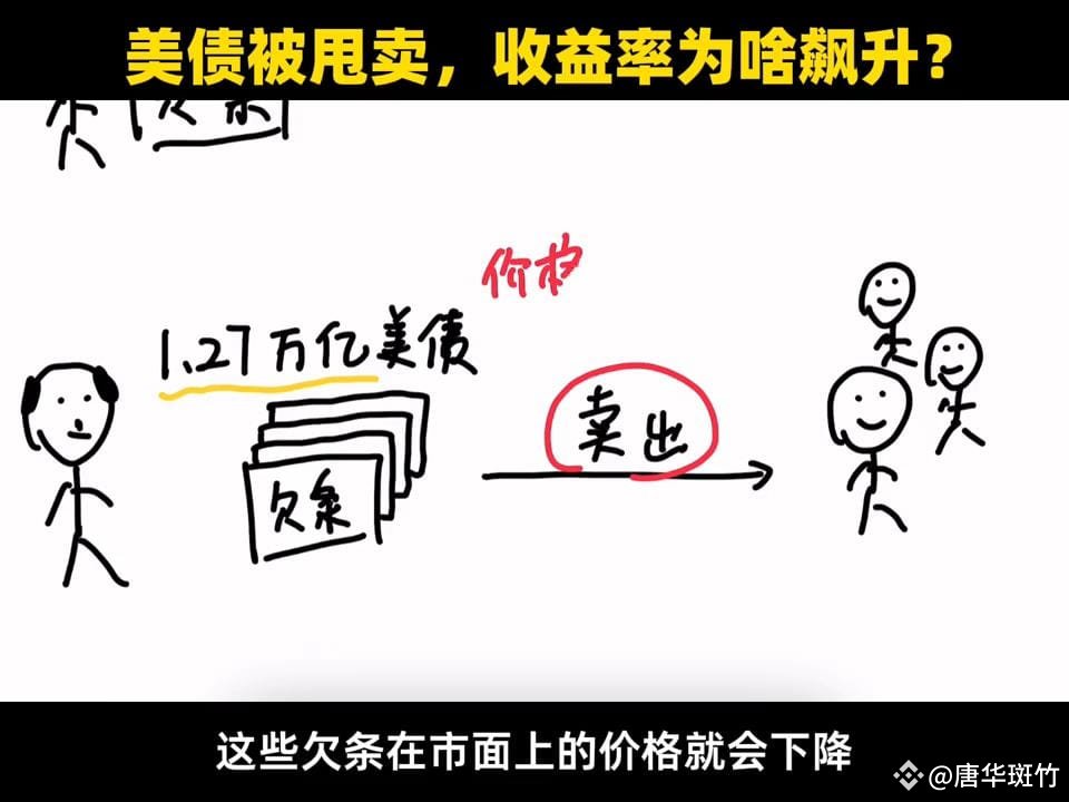 这就是为什么抛售美国国债会导致美债的收益率上升。因为到期归还的本金和利息不变,但是这些人可以用更低的价格买到这些欠条,所以对应的收益率就上去了。