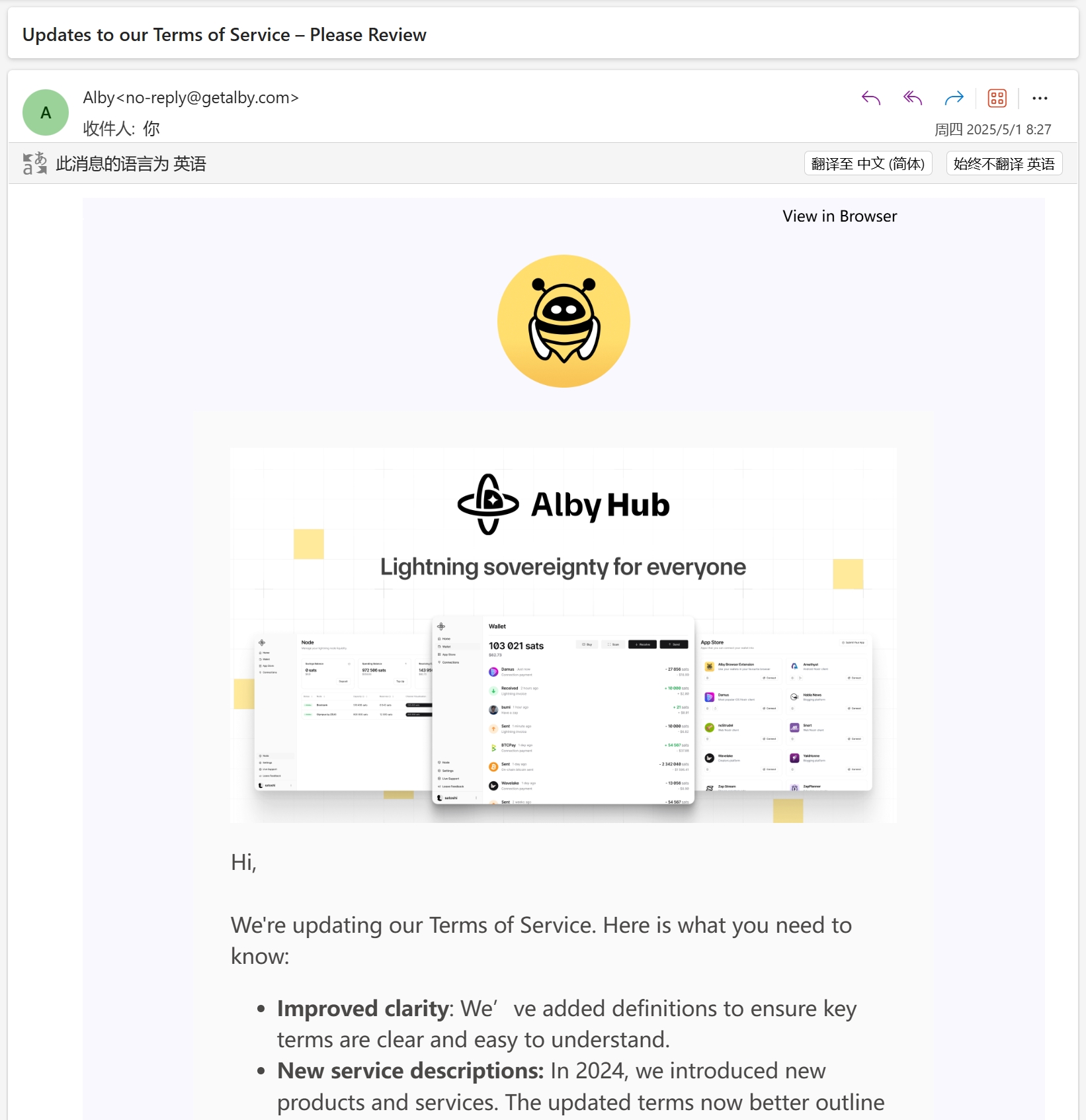闪电网络钱包 Alby,随意更改用户协议,转走用户的BTC 余额,比特币闪电网络生态钱包还安全吗?