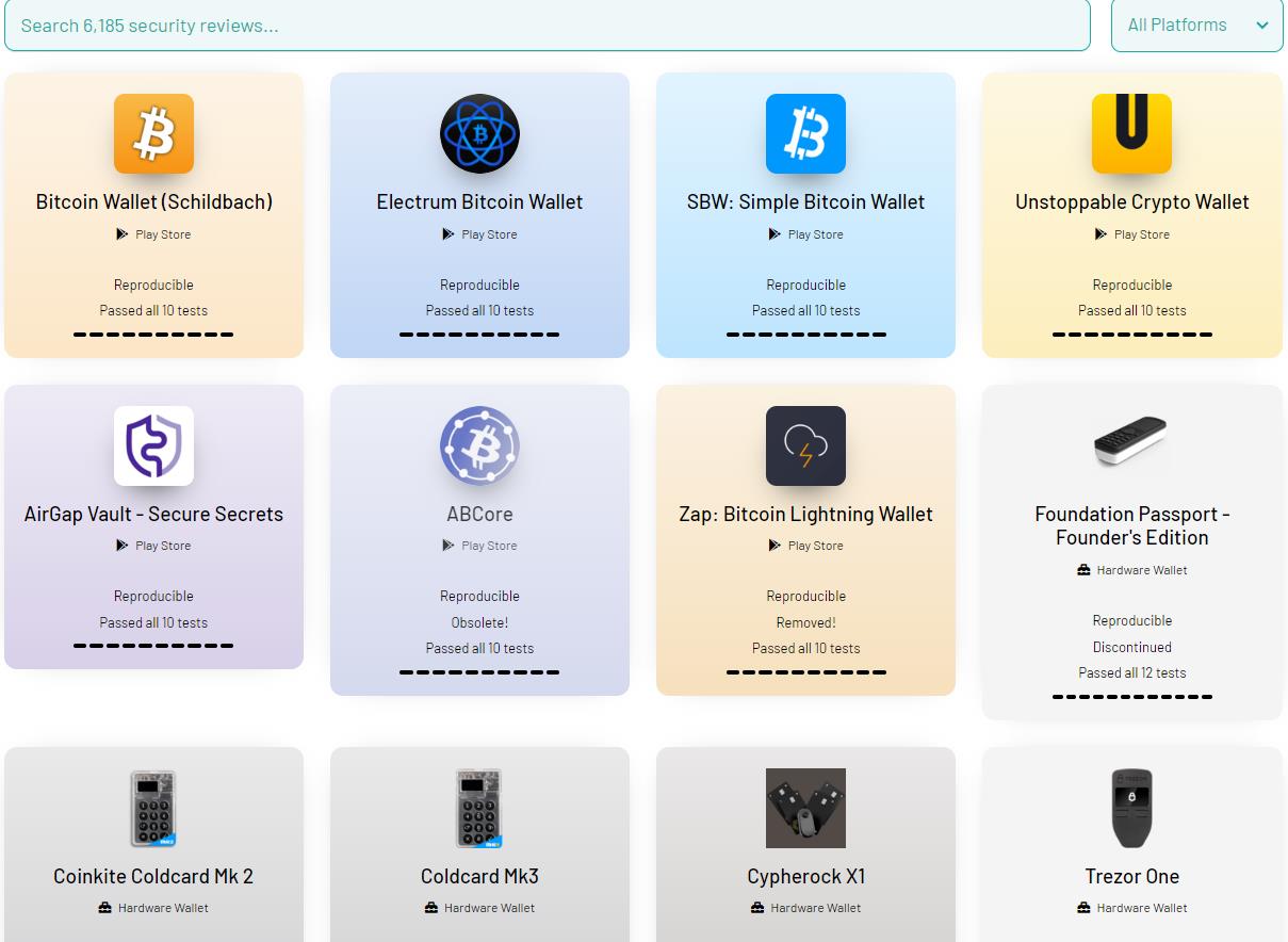 - 安全评估结果:他们提供了对6000多个移动和硬件产品的安全评估结果,帮助用户了解钱包的安全性。