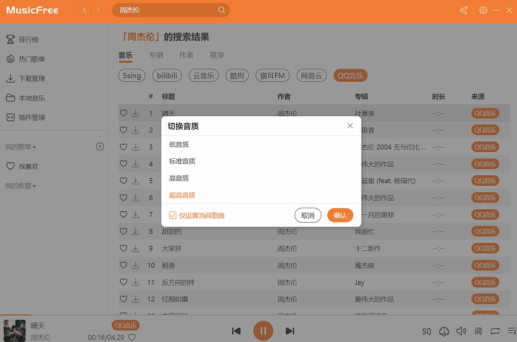 - 为什么不同音质的歌曲听起来没区别 / 无法切换音质?原因基本同上,是否拥有不同音质的音乐由插件决定。软件内会根据设置,在某个音质缺失时,自动用更高或更低音质代替。