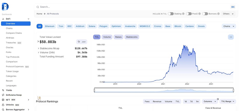 DeFiLlama 是一个去中心化金融(DeFi)领域的链上数据平台,提供有关各种 DeFi 协议、区块链和加密货币资产的实时数据和分析。