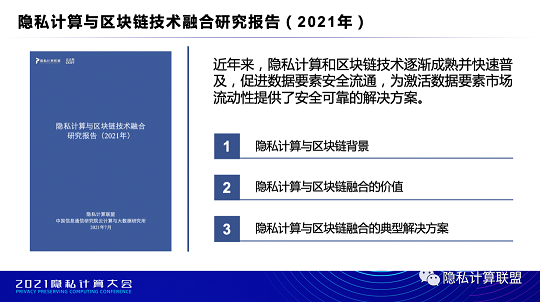 中国信息通信研究院, 隐私计算联盟, 《隐私计算与区块链技术融合研究报告(2021年)》, 政策, 产业, 技术, 挑战, 应用价值, 典型解决方案