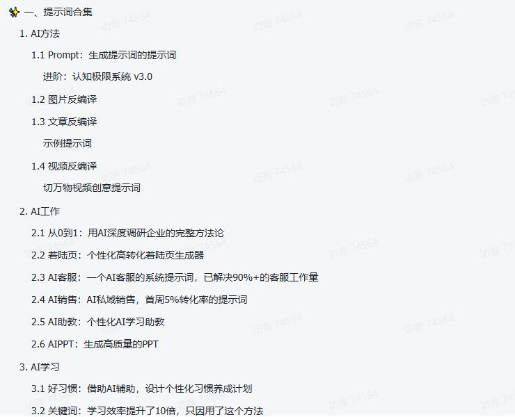 -原则:持续更新,含提示词、演示示例及文章教程;我会确保,每套提示词,都是基于自己的实践而来;同时,也会逐步整理一些优秀的AI系统提示词或相关参考资料