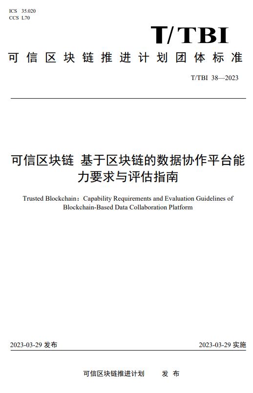 【标准名称】:可基于区块链的数据协作平台能力要求与评估指南 (Capability Requirements and Evaluation Guidelines of Blockchain-Based Data Collaboration Platform)