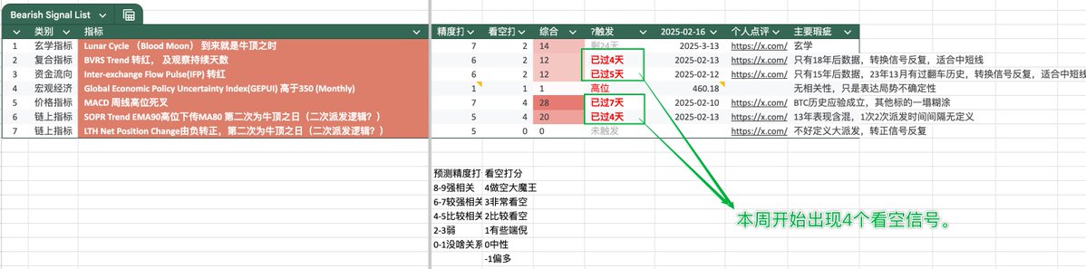 当前有7个看空信号,这个帖子持续收集更新值得我们关注的看空信号: