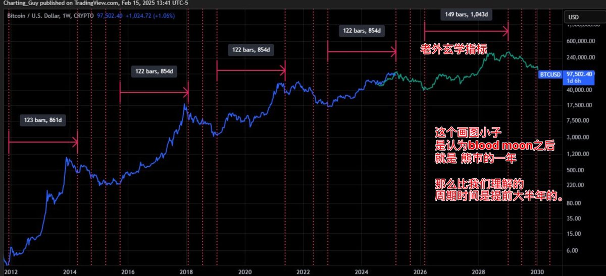 43A6@_43A6 Feb 16 View on Twitter 血月传说正式加入空头队伍。 通过@0x GuanYin’s Father-crypto 和科学先生的启发,我认为看空看多这些观点言论都应该能提炼出如何证伪。 我以后都尝试加上证伪的断言: 断言: ·2025年3月13号血月之日前后30天是牛市顶部 ·更保守温和的版本:血月之日前后30天是上半年顶部 若没发生则证伪。https://x.com/ChartingGuy/status/1890834593781280888 Show this thread