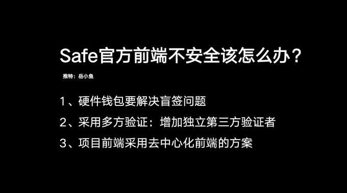 这并不就是说Safe已经不安全了,这里面有一些区别,Safe本身的智能合约没有问题,有问题的是它的前端。