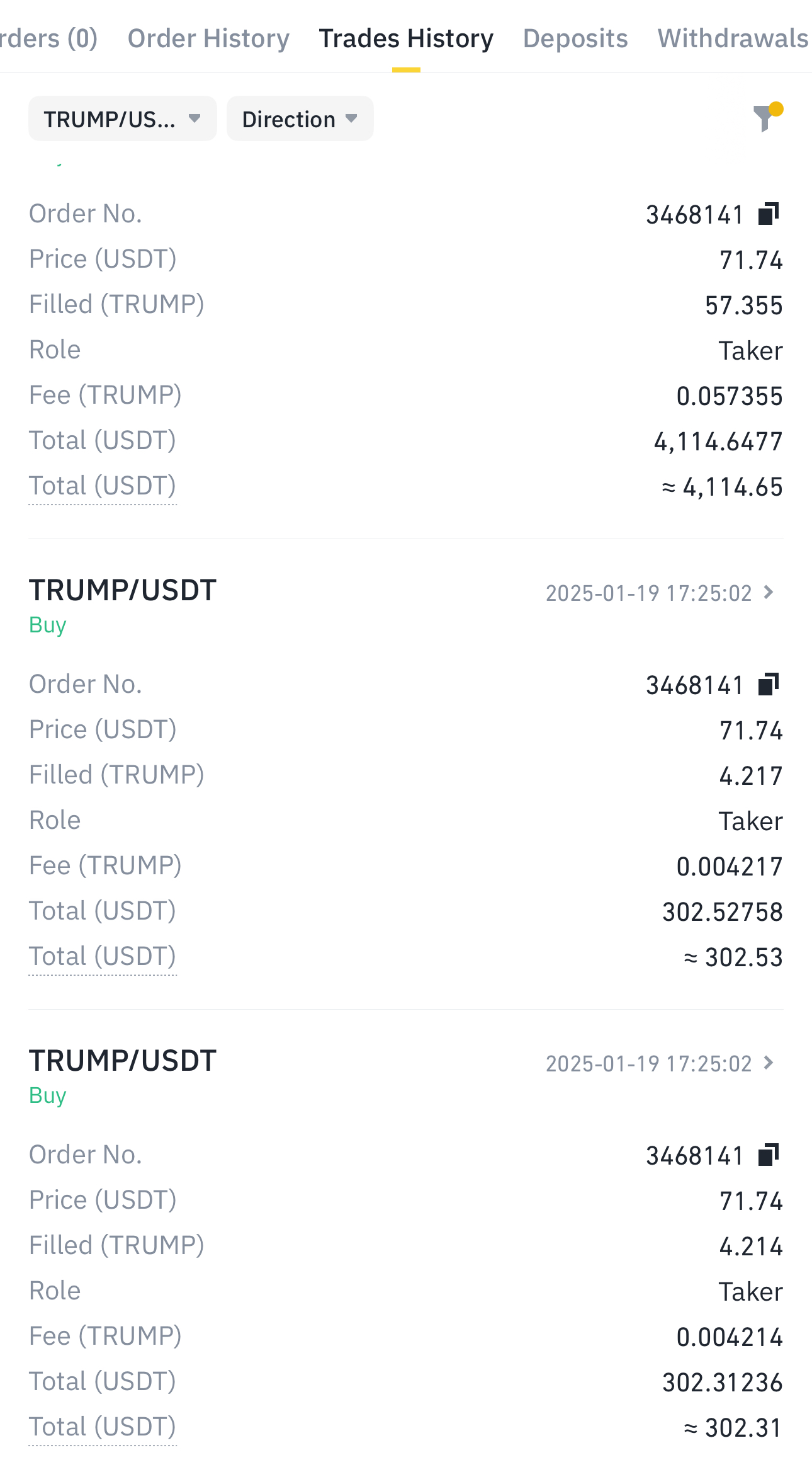 1️⃣ 71塊進場買川普幣 $trump, 62塊賣掉🥹
