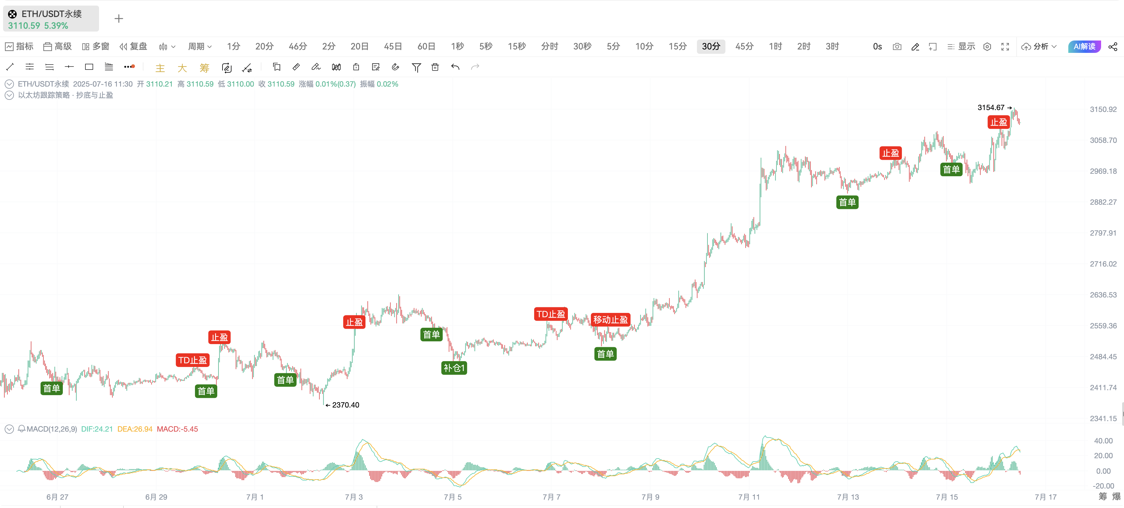 图一:OKX-ETHUSDT 永续合约 30分钟周期