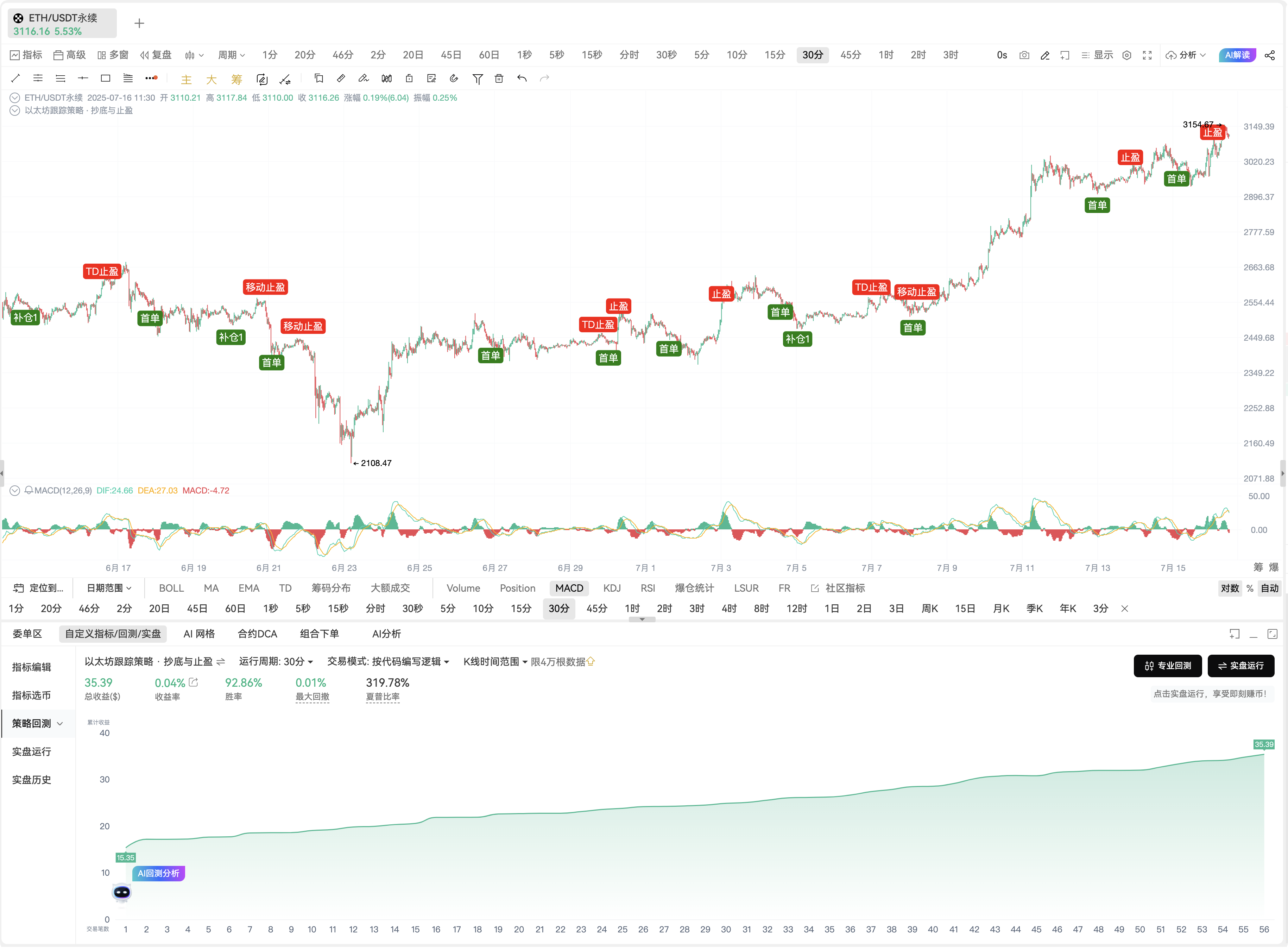 自定义指标· 以太坊跟踪策略 · 抄底与止盈