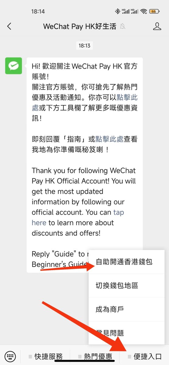 微信小程序搜“wechat pay hk好生活”关注后进行下面操作。