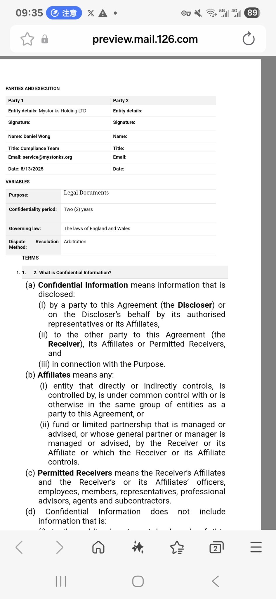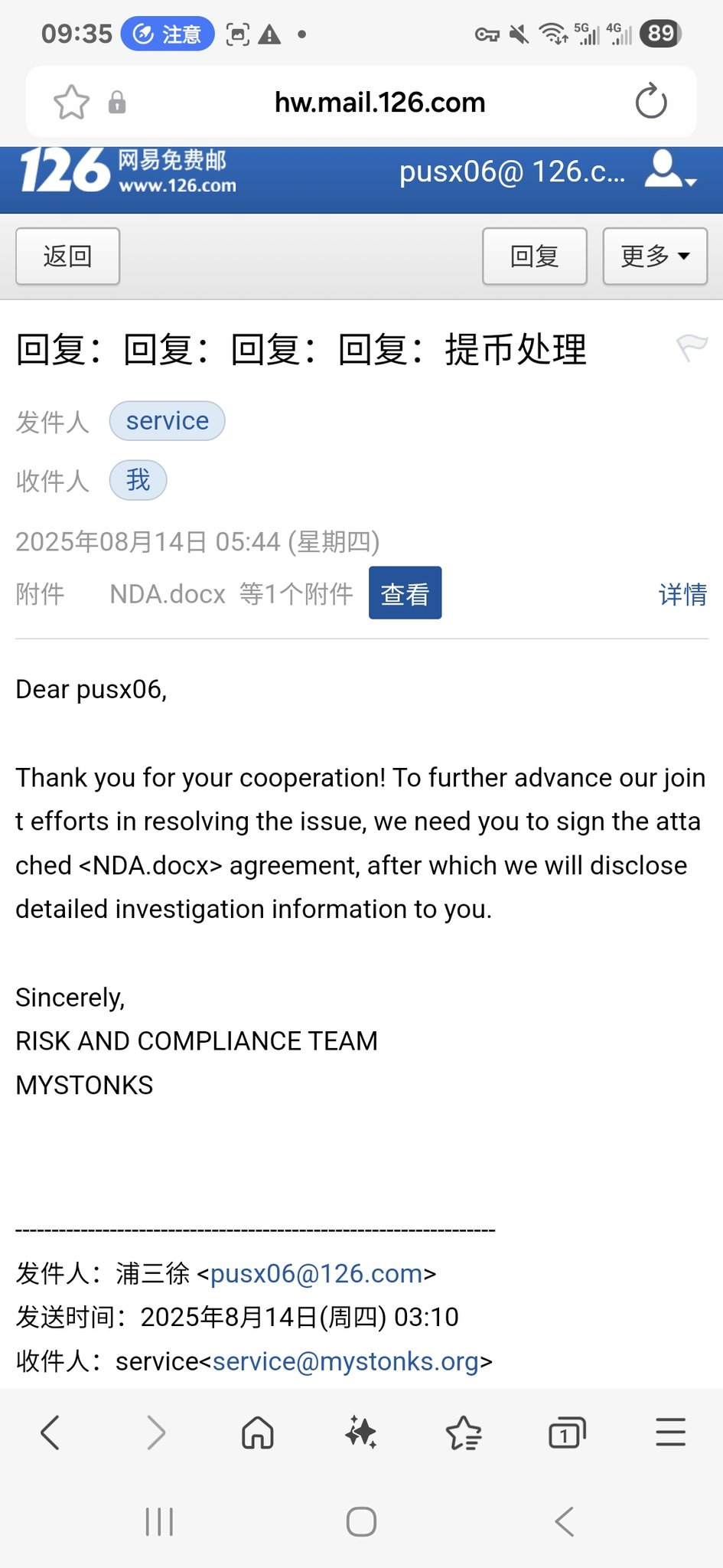 昨天mystonks团队联系,让我提供身份证明,地址证明,收入证明,银行流水,我全部提供,紧接着他们让我签署保密令,这个我有点怕,保密令是个啥我没听说过。我正在联系专业人士咨询。多谢各位持续关注