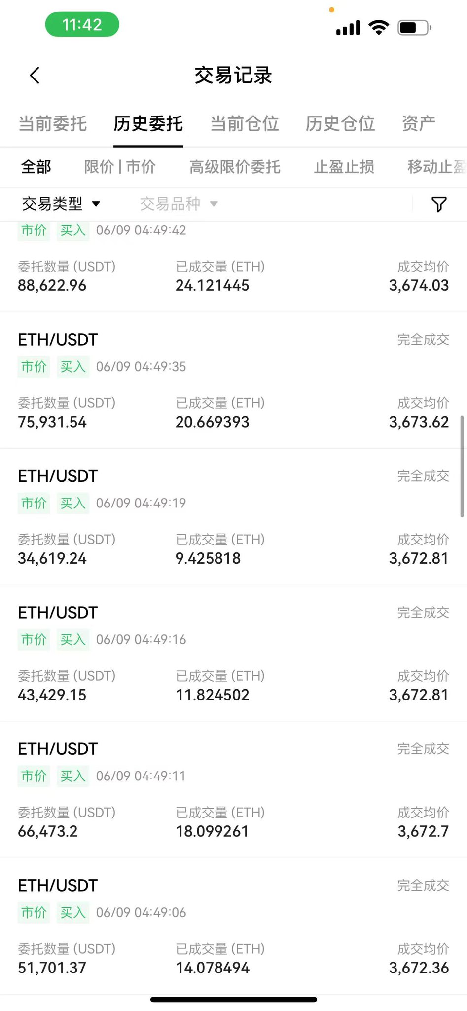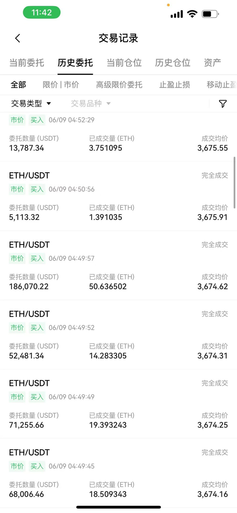 2. 市价疯狂买入以太