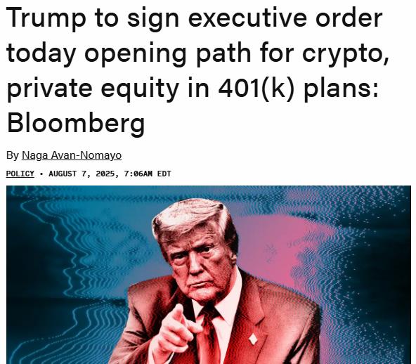 The Block:特朗普今天将签署行政命令开放加密和私人股本在401(k)计划中的路径