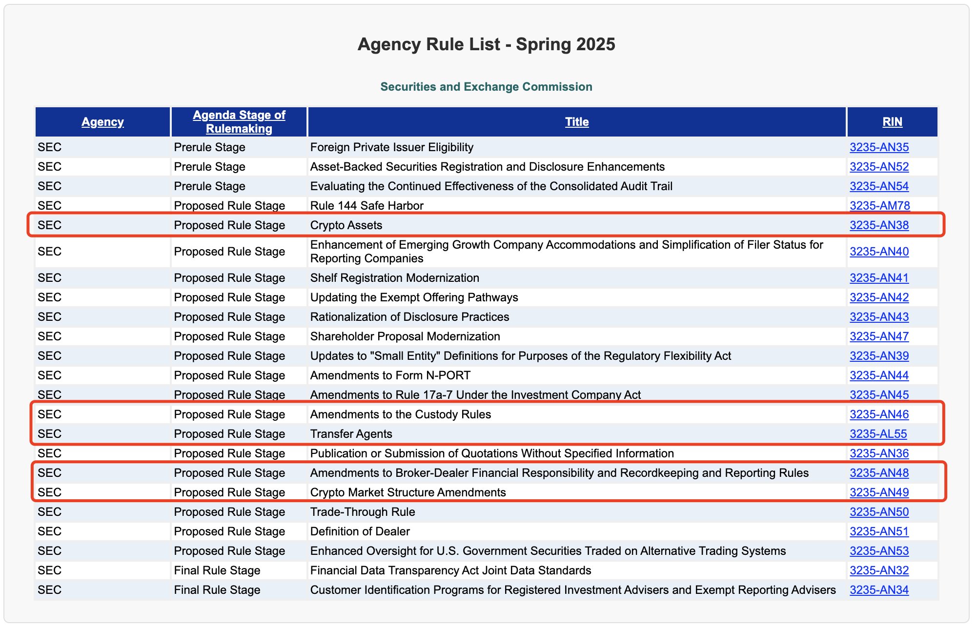说说今天Sec发布的《监管与放松监管行动统一议程》的细节及利好赛道分析。