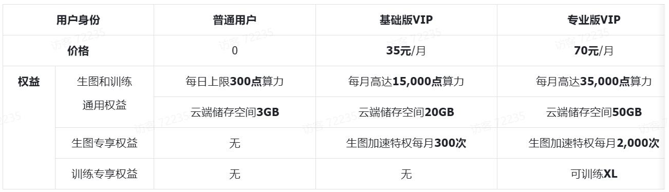 非会员每日登陆后可获取300点算力,约可生图300张,按照默认参数预估;云端储存空间5GB。
