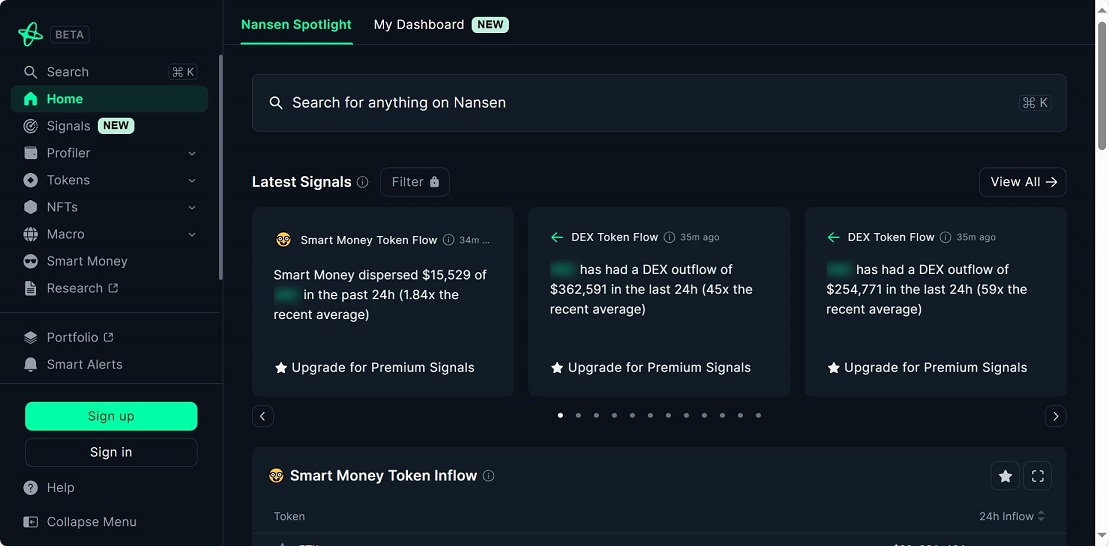 Nansen是一个提供加密货币投资者和团队的链上洞察力的平台。它利用区块链数据分析和智能警报功能,帮助用户了解加密货币市场的实时流动和趋势,以支持投资决策和风险管理。