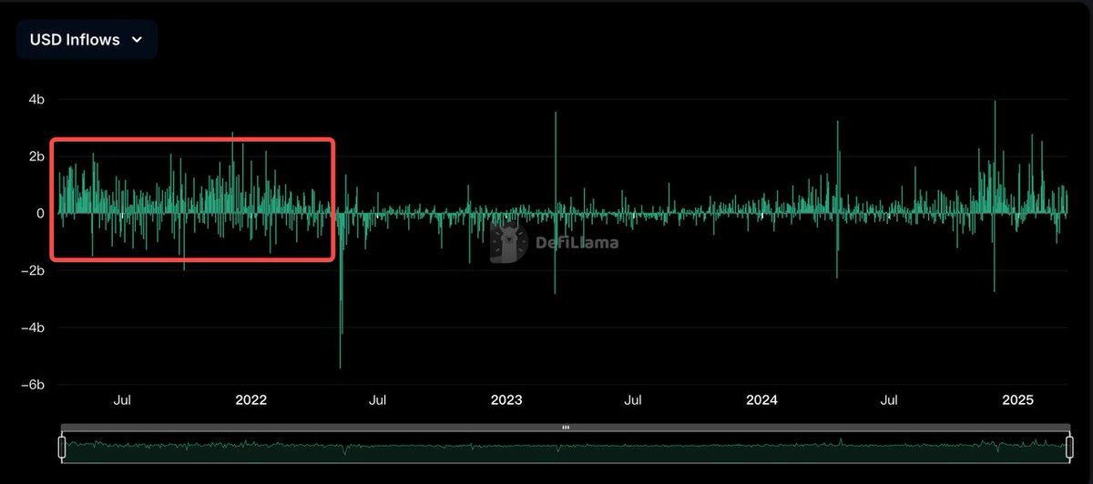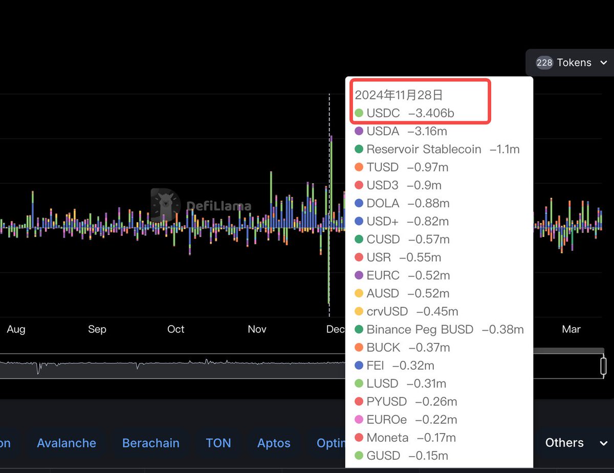 因为稳定币的出金是走的 USDC,而 USDC 通道是能真正影响市场流动性的用户