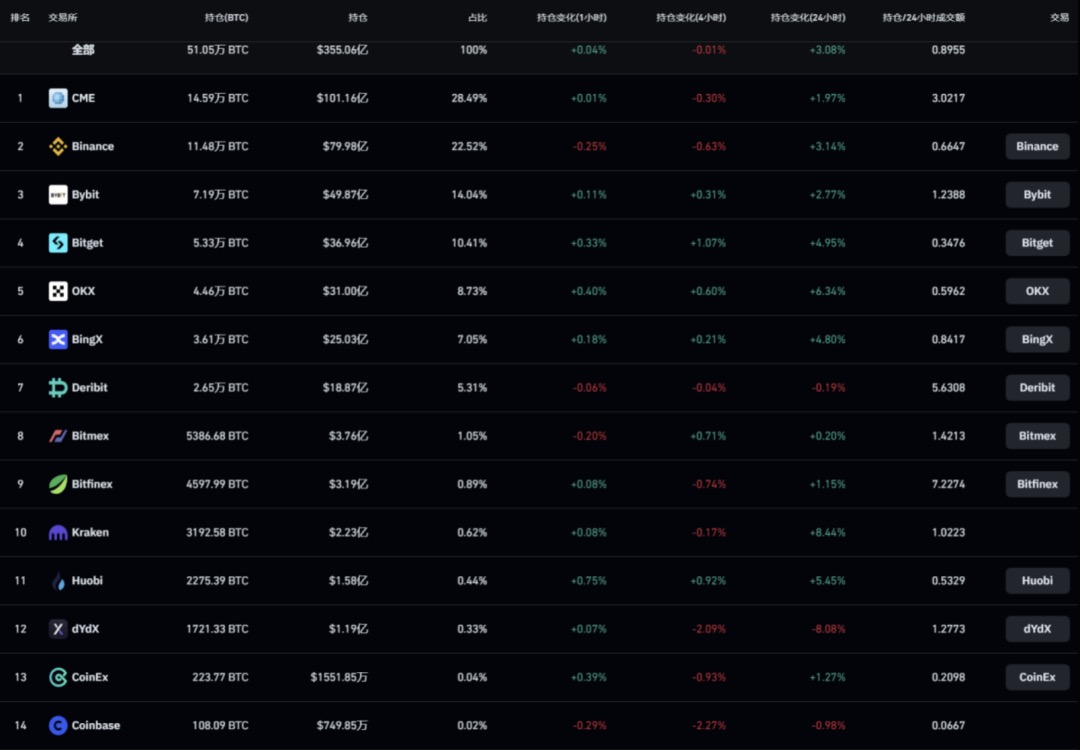 按照这些数据,Binance + ETH交易对的组合能给Ethena提供的市场容量已经非常接近极限了。但还可以通过引入多币种、多交易所来突破这个极限。按照Tokeninsight数据,Binance占据了衍生品交易市场50.1%的份额,按照Coinglass数据,除ETH以外,Top10币种在Binance的合约持仓总量约为ETH的三倍,按照这两个数据估算: