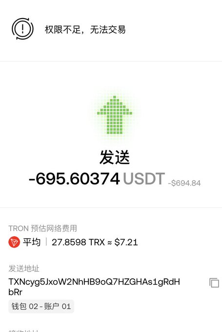 然后发现卧槽,在 #tron 网络上还真有700usdt,于是进行了光速转账!