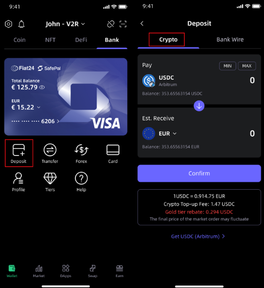 SafePal钱包支持将Arbitrum网络的USDC出金到Fiat24银行账户。也支持对外转账,即转帐法币到其他银行账户,比如可以将法币先转到诸如Wise的第三方平台,再从Wise转回到国内银行。