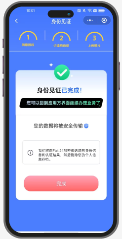 再点击开始进行人脸拍照识别。识别成功后,身份见证就完成了。