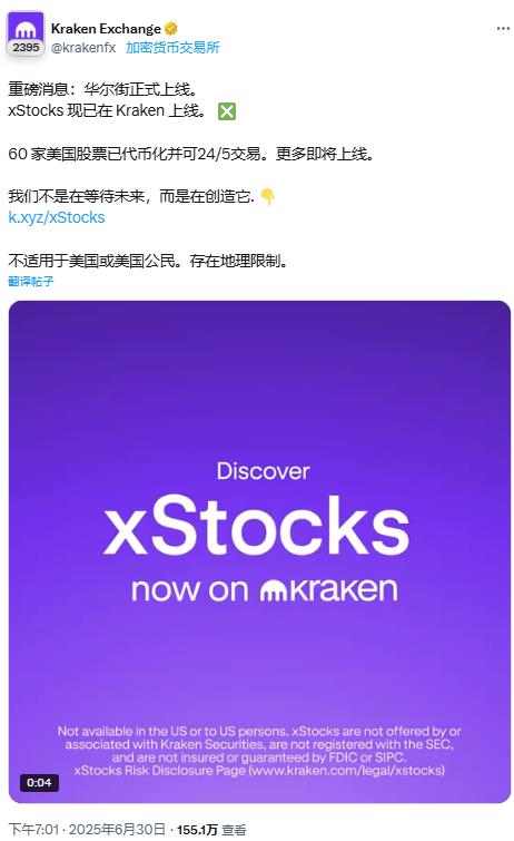 已确认,Kraken 正式上线了币股交易市场,在原有的 Crypto 板块,新增 xStocks,支持 50 多种美股代币,且账户申请页面,不限制中国大陆注册。