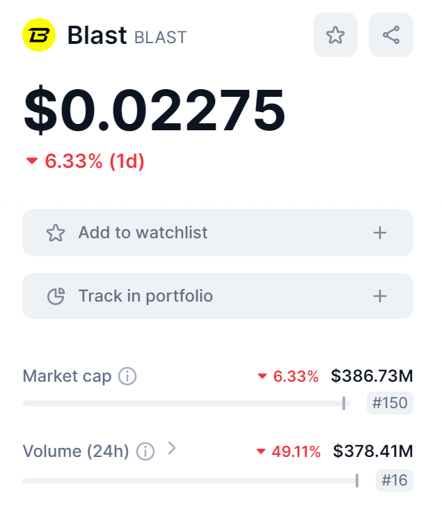 ▶️我们回到Blast的例子,他的初始释放为17%也就是170亿,他上线的主力所是Upbit, Bithumb和Bybit,根据同样上币策略的Taiko头两日(次日上韩国所)表现情况,预估一个3-5亿美元的交易量是合理的,假设仅2成为2级对2级的换手,纯买盘大约在3亿上下。那么当前约0.024左右(FDV 24亿)就是非常合理的,并不是“低估”
