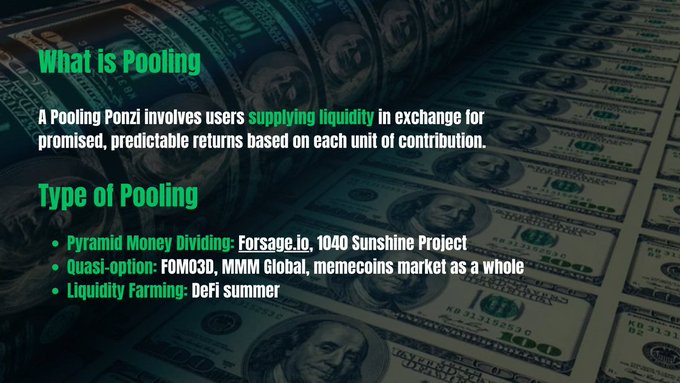 资金在参与者之间循环流转,新资金用于支付旧参与者回报(例如 A转钱给 → B 转给 → C转给 → A),通常包括清算或重启条款,以应对资金目标未达到的情况(例如:FOMO3D、3M、整体上的迷因币市场)。