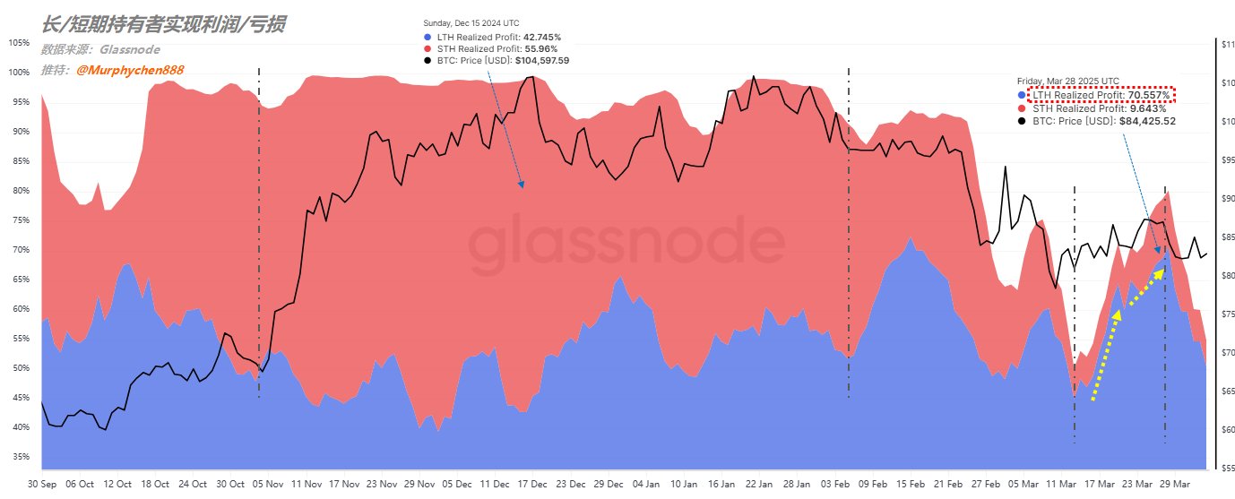 而就在3/13-3/25的反弹期间,LTH利润兑现占比已达到70%,STH却只有10%;说明此时的套现行为主要是长期持有者,短期持有者已经没有多少利润空间了。