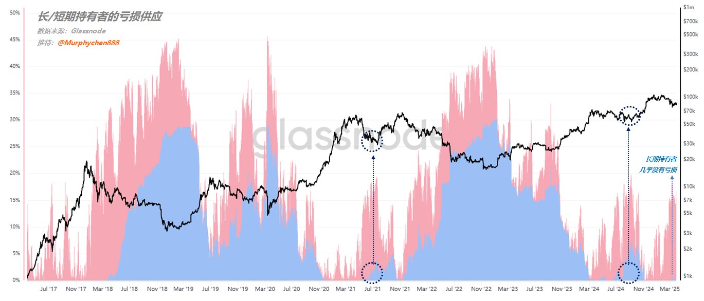 可以看到,历史上无论是在深熊还是牛市回调,都会在LTH逐渐变成亏损状态后形成阶段性底部,甚至是大周期的底部。因为卖无可卖(出现投降)便形成了底部。