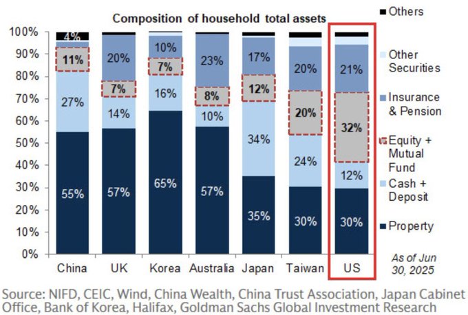 在中国,传统资产类别,包括现金、储蓄、房产,居然占了居民资产的82%!