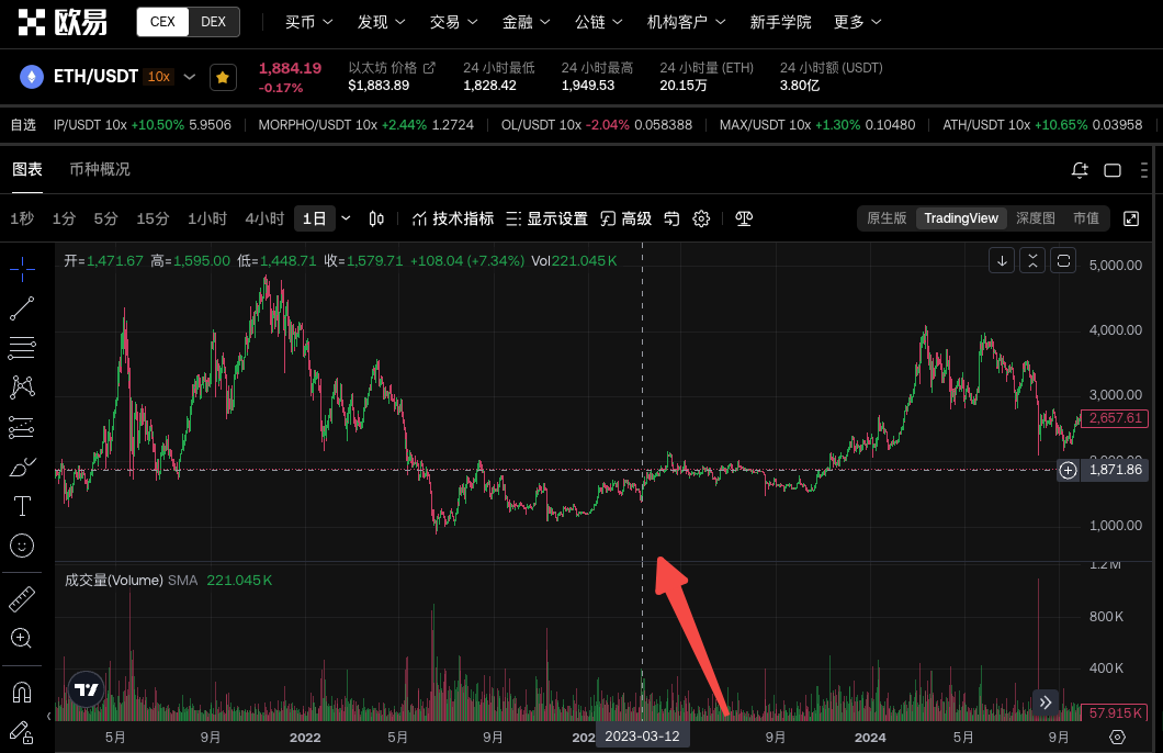 你看这个线刚插下来没多久吧,还得再等两个月,等下一个稳定币暴涨的时候就是右侧交易的时候